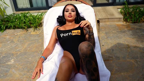 Sultry Brunette Tattoocoup1e Sucks Cock On The Beach